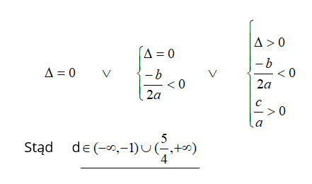 Układ nie posiada rozwiązań dla tych wartości parametru d, dla których spełniona jest alternatywa układów:
