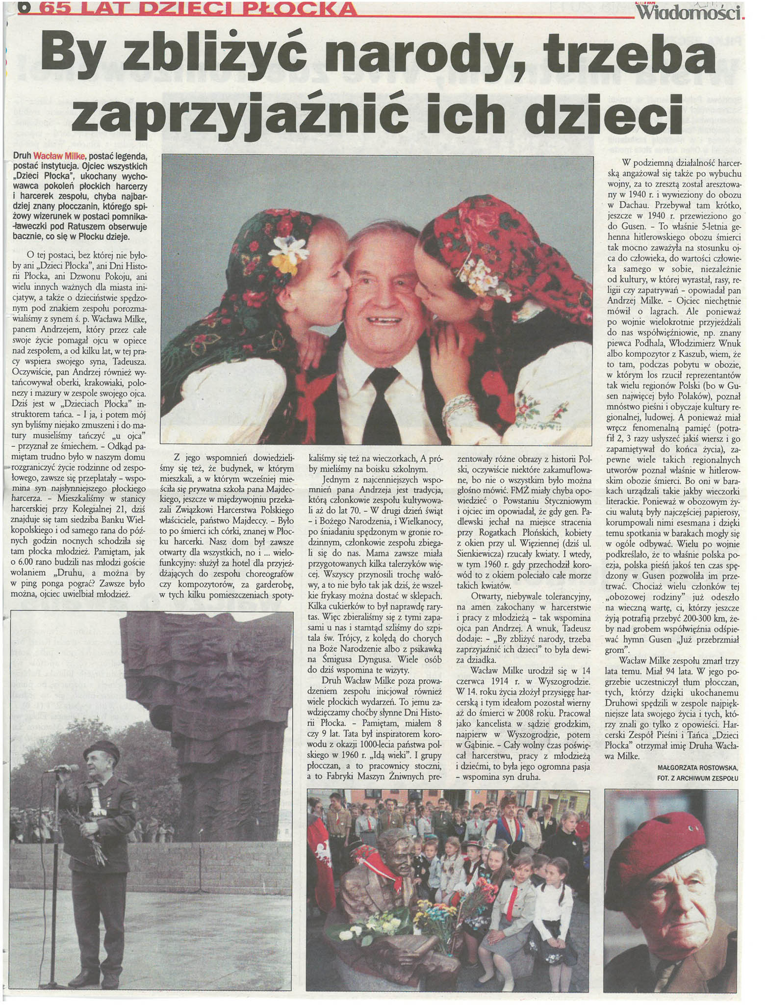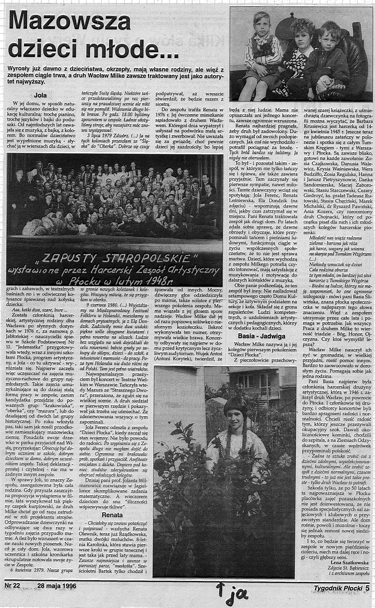 Setki dzieci ze szkół podstawowych brały udział w pokazach gimnastycznych o tematyce dożynkowej. Po występach, w których również brałam udział, moja nauczycielka śpiewu zakomunikowała mi, że jeden z druhów z Harcerskiego Zespołu Pieśni i Tańca „Dzieci Płocka” ze względu na wysokiej jakości wykonanie układów choreograficznych zaproponował mi wstąpienie do Zespołu. Od tej pory stałam się członkiem tej wielkiej harcerskiej rodziny.